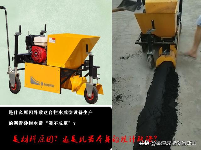 攔水帶成型機(jī)的出現(xiàn)讓高速瀝青砂攔水帶工程變得簡單,但是很多問題也出現(xiàn)了。這也是最近很多客戶一直給我反應(yīng)的問題。這些客戶包括使用我們工廠設(shè)備的客戶,也包括使用其他品牌的客戶。我本著我為人人,人人為我的的和諧精神,把這些案例以及為什么會(huì)出現(xiàn)這樣的問題分析處理方法放出來,希望能幫助到遇到這些問題的施工隊(duì)。
